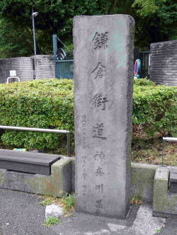 丘を降りると、鎌倉旧街道! 街道には呉服屋さんも。旧街道の分岐では昔から大きな木が道標